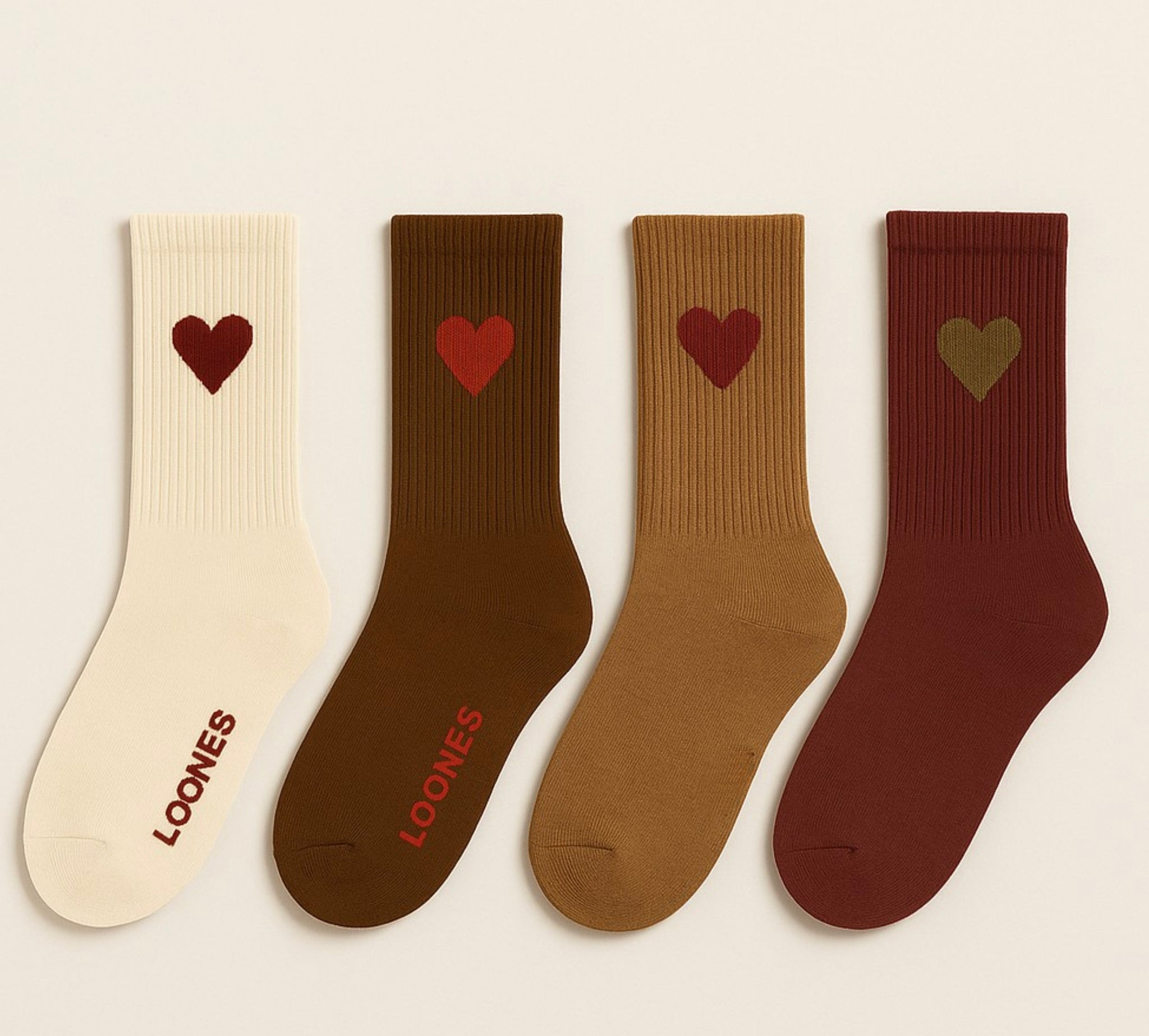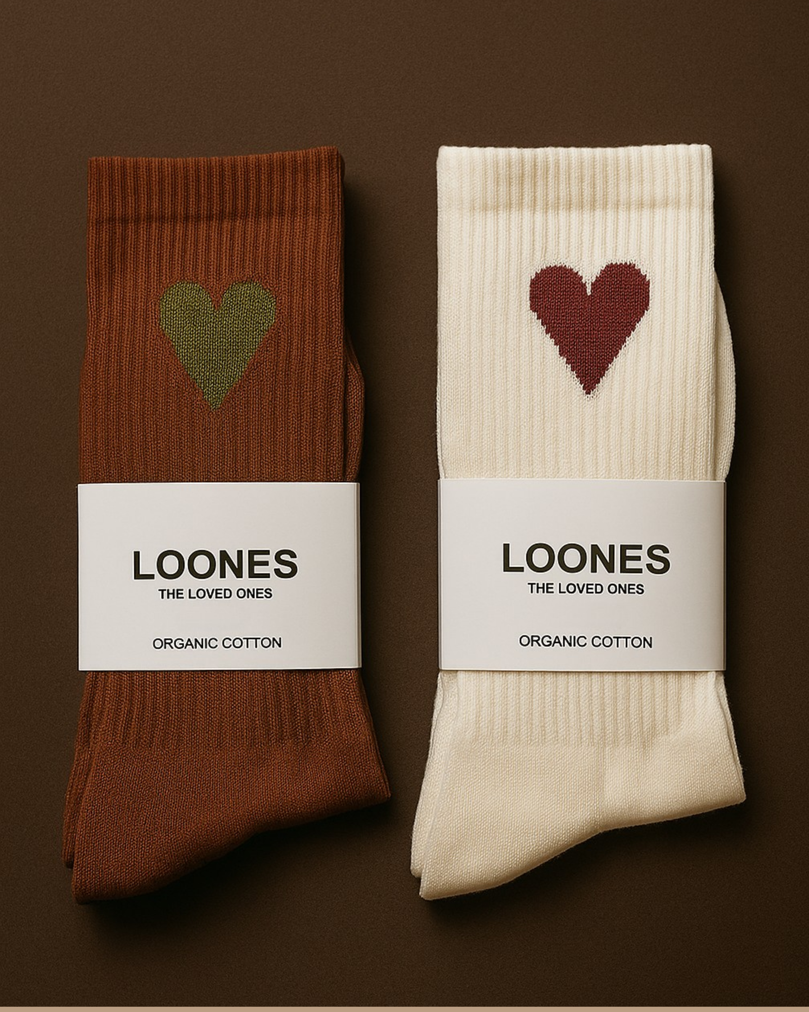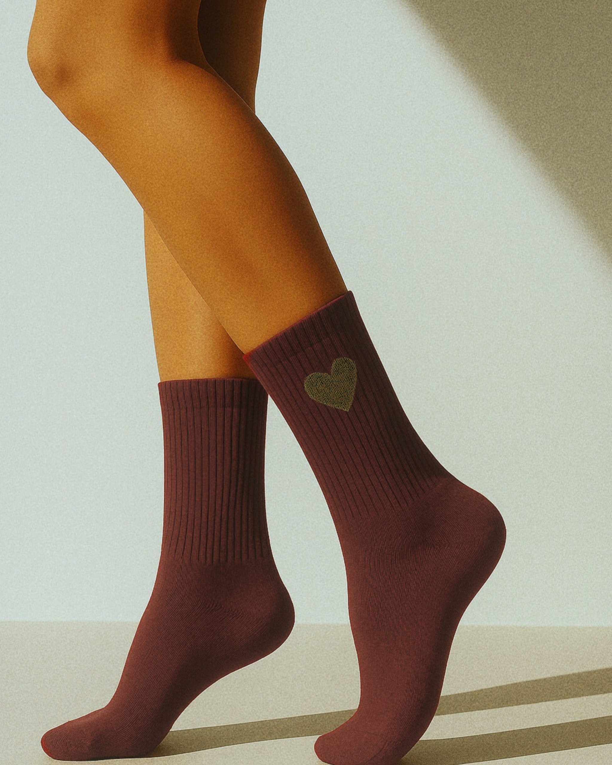 - Ein Paar in erdigem burgunder-braun mit olivgrünem Herz