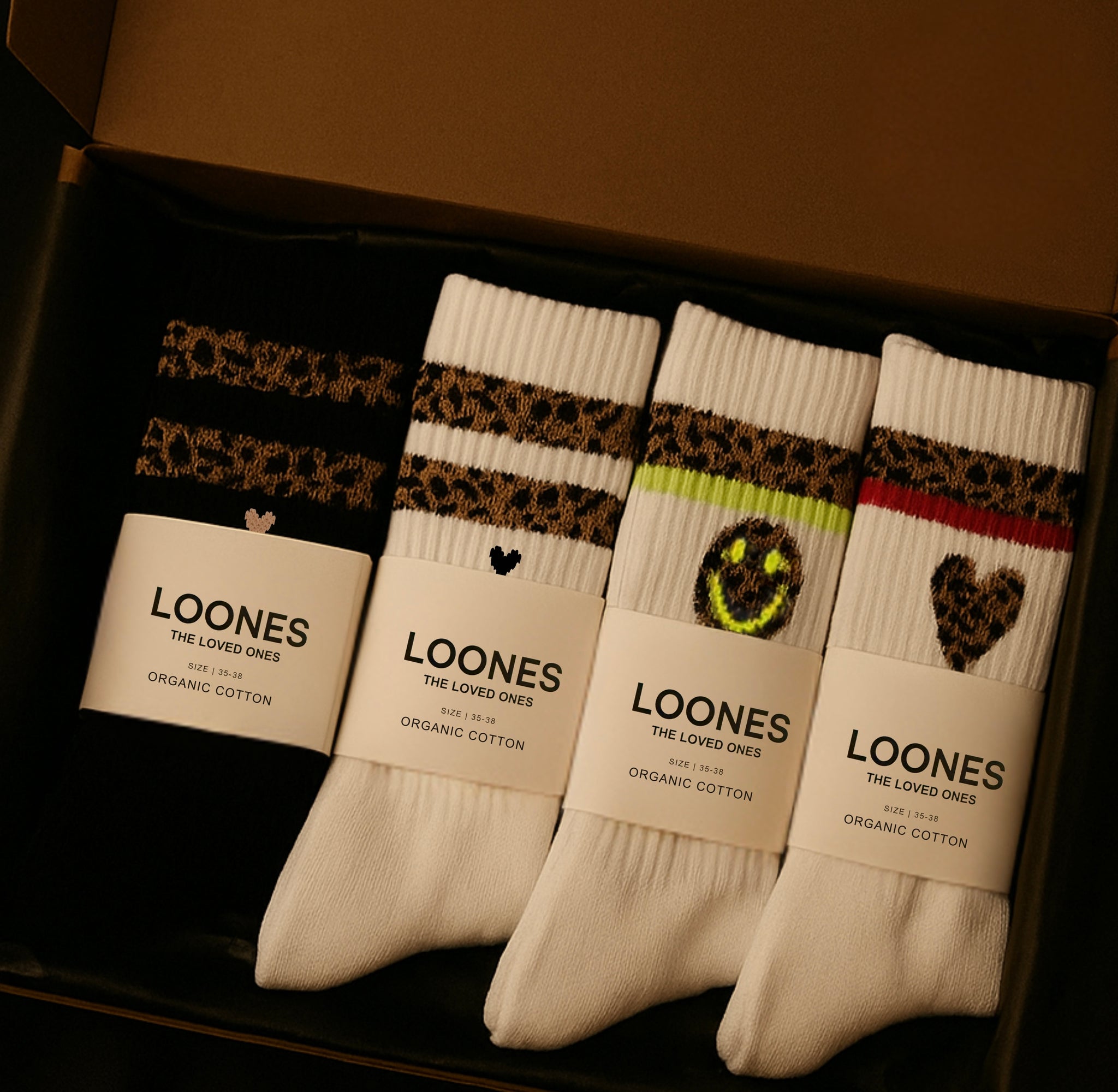 Kuschelig-weiche Premiumsocken aus Bio-Baumwolle mit trendigem Leo Artwork in vier Styles: