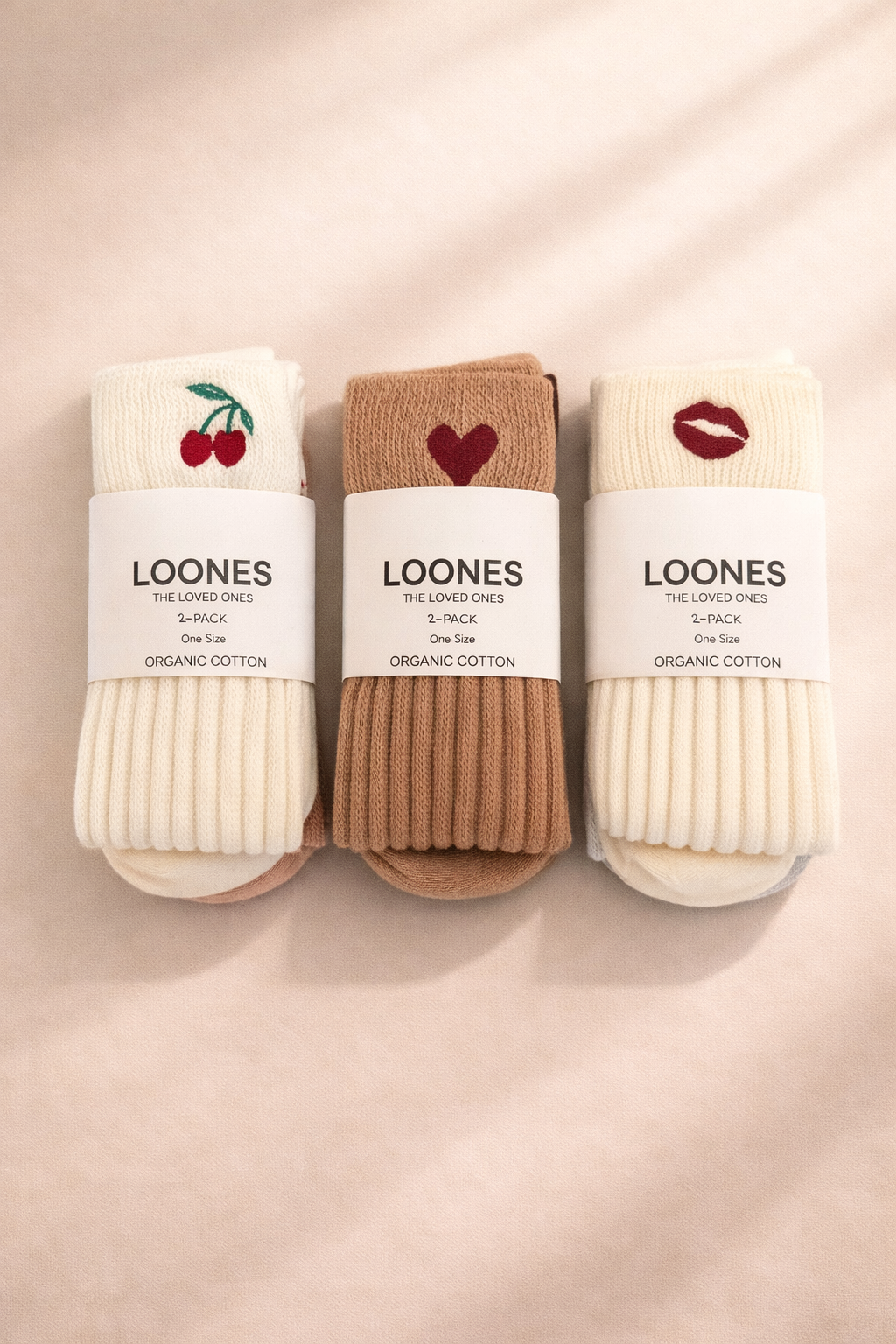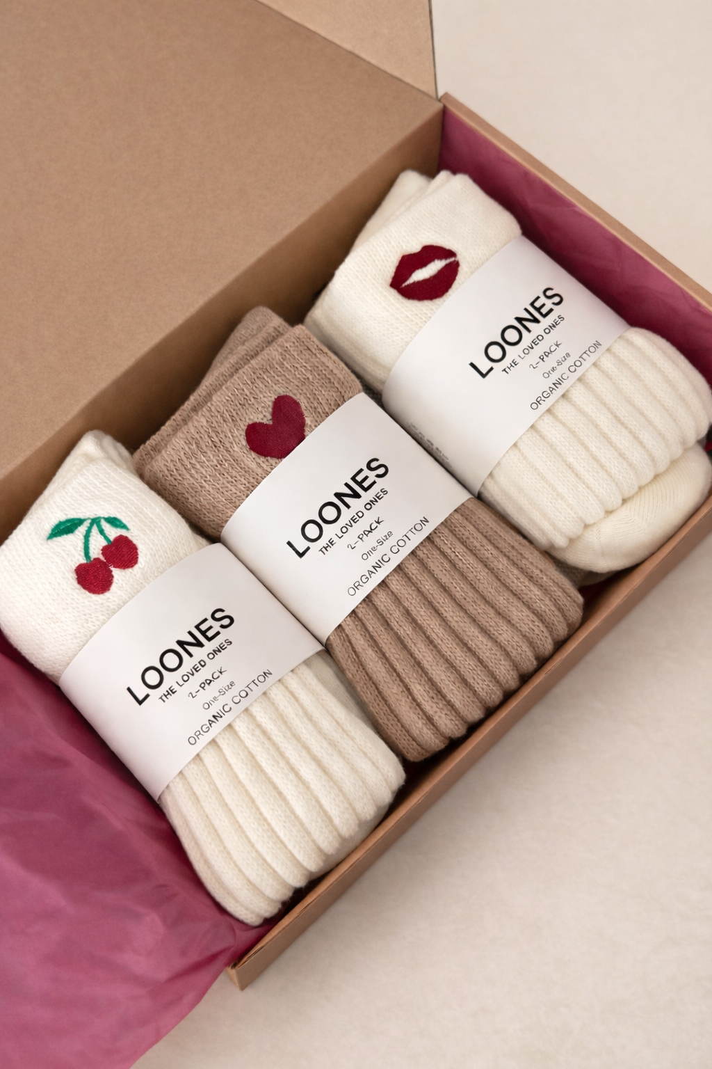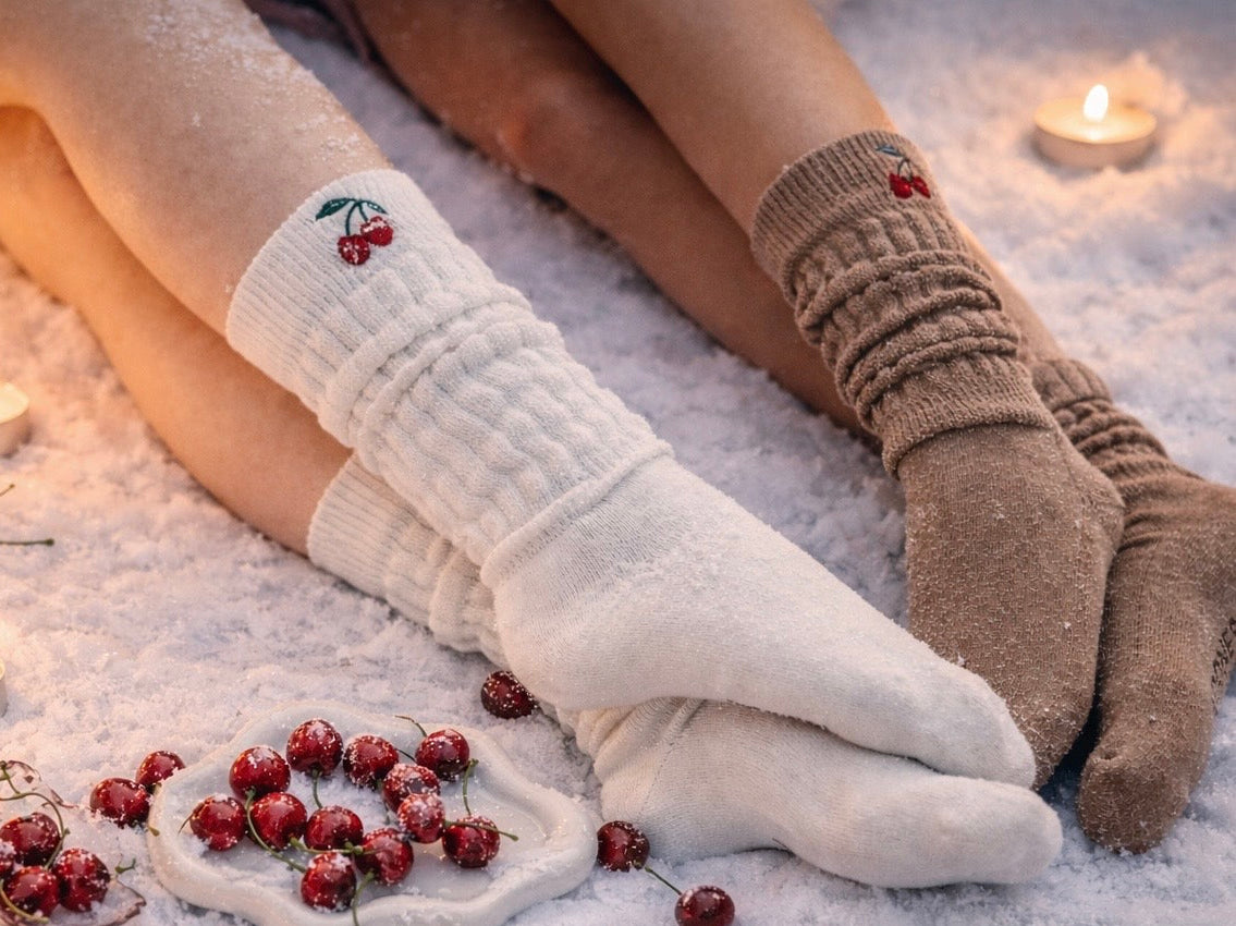 Entdecke die Cozy Selection – sechs trendige Slouch Socken in drei beliebten Designs: Heart, Kiss und Cherry.